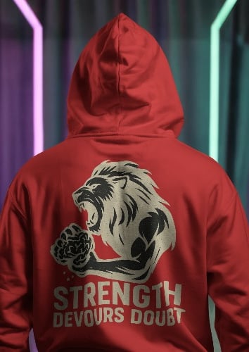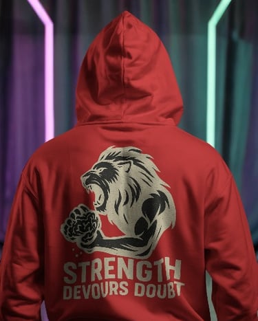 Our designs are born from our own journey. Some days it’s about pushing through doubt and finding strength — like our “Strength Devours Doubt” hoodie. Other days it’s about embracing fun, color, and playfulness — like our “Funky” hoodie.